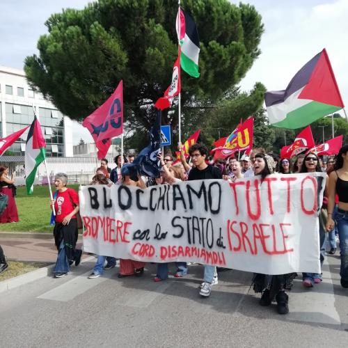 Forti e pieni di tensione gli slogan contro il genocidio del popolo palestinese, e contro la vergognosa complicità del governo italiano, che non vede non sente non parla, ma manda le armi con cui l'esercito israeliano uccide bambini, donne, uomini, vecchi...