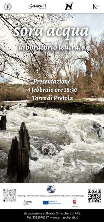 L'altro laboratorio si chiama "sora acqua" e si svolge nell'ambito del progetto europeo WAVE da noi coordinato. Il progetto prevede una serie di azioni tra cui questo laboratorio intergenerazionale (si rivolge soprattutto a sotto i 30 e sopra i 65) della durata di 30 ore.