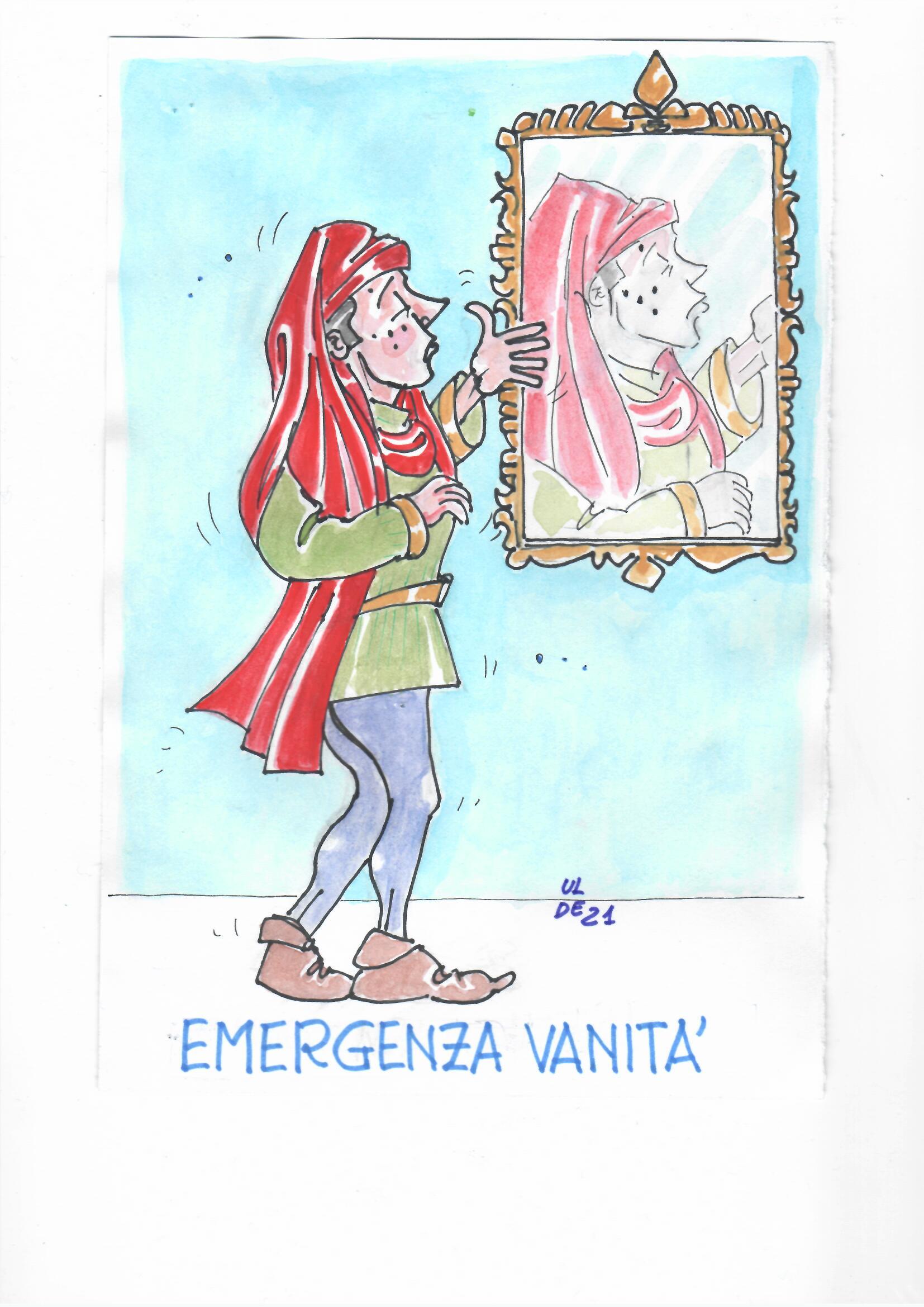 (vignetta di Ulderico Sbarra) L'emergenza: non da virus, non per la sanità, non per l'economia o il lavoro, non per l'ambiente… Il vero problema dell'Italia, l'emergenza continua, è l'egocentrismo di qualcuno...